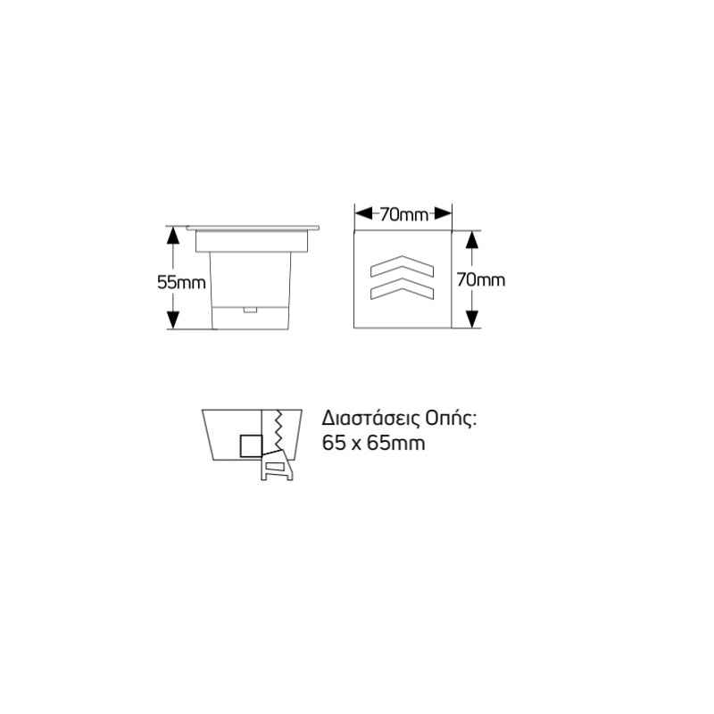 Απλίκα LED χωνευτή 70x70 1W 60lm 3000K IP65 GEYER