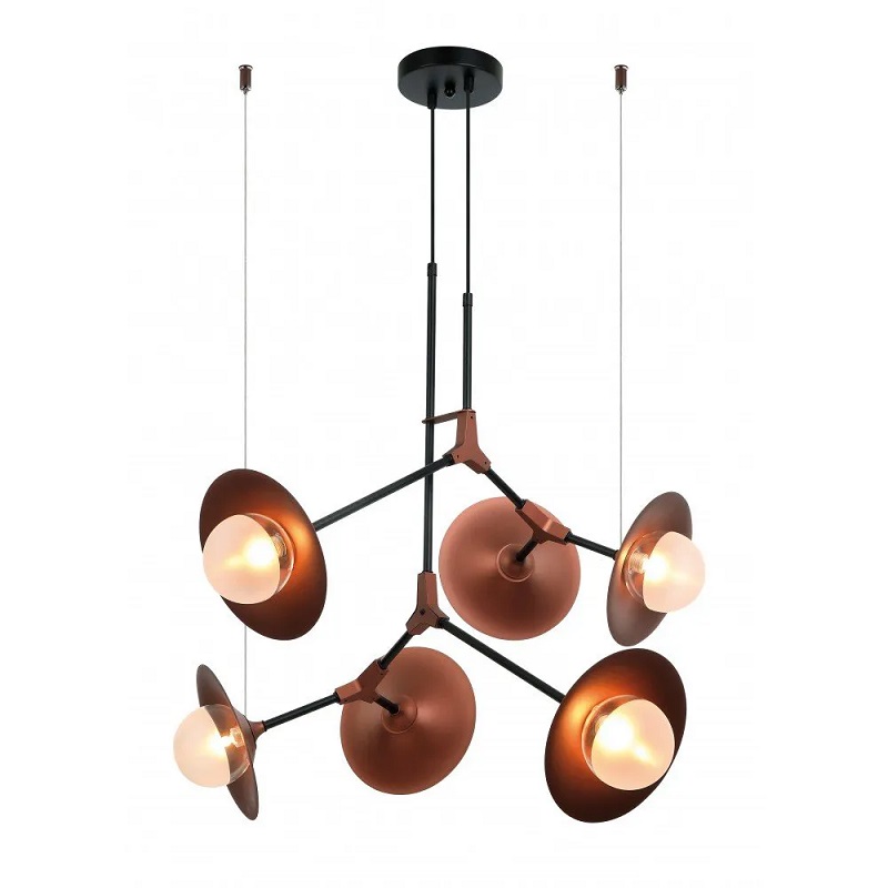 Φωτιστικό κρεμαστό 6φωτο μεταλλικό μαύρο/χάλκινο με γυαλί G9 Olivia VIOKEF