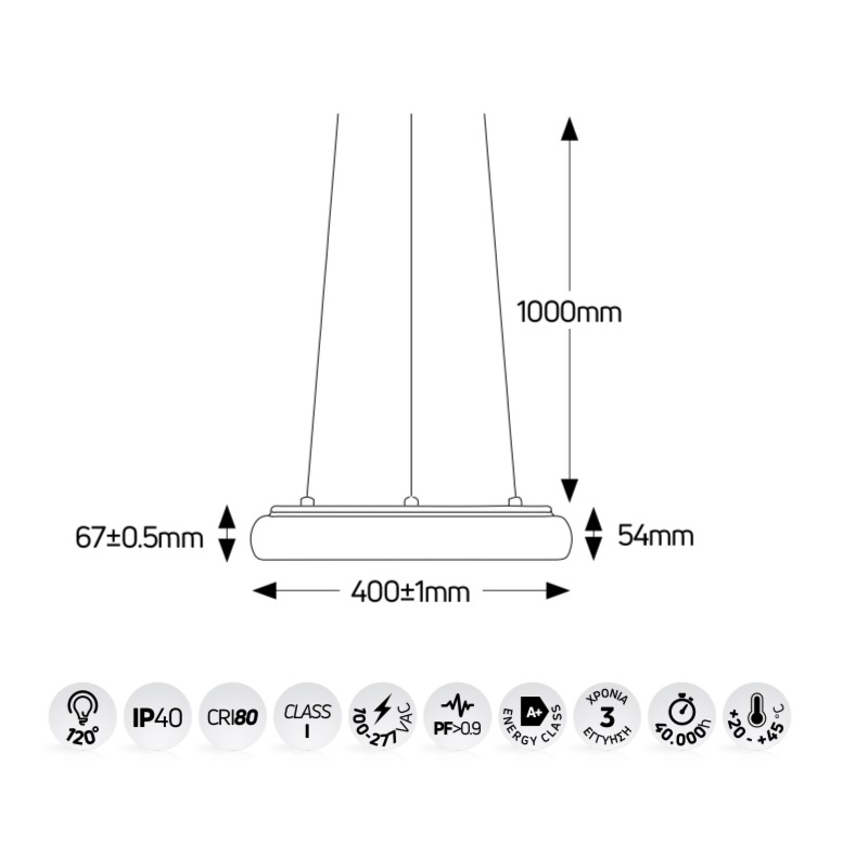 - Χρώμα φωτισμού: 3000Κ (θερμό λευκό)