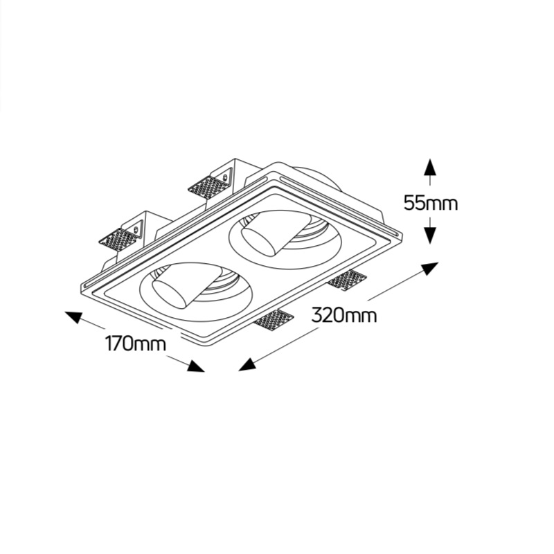 Γύψινο σποτ οροφής ρυθμιζόμενο χωνευτό τετράγωνο 170x320 2xGU10 GEYER