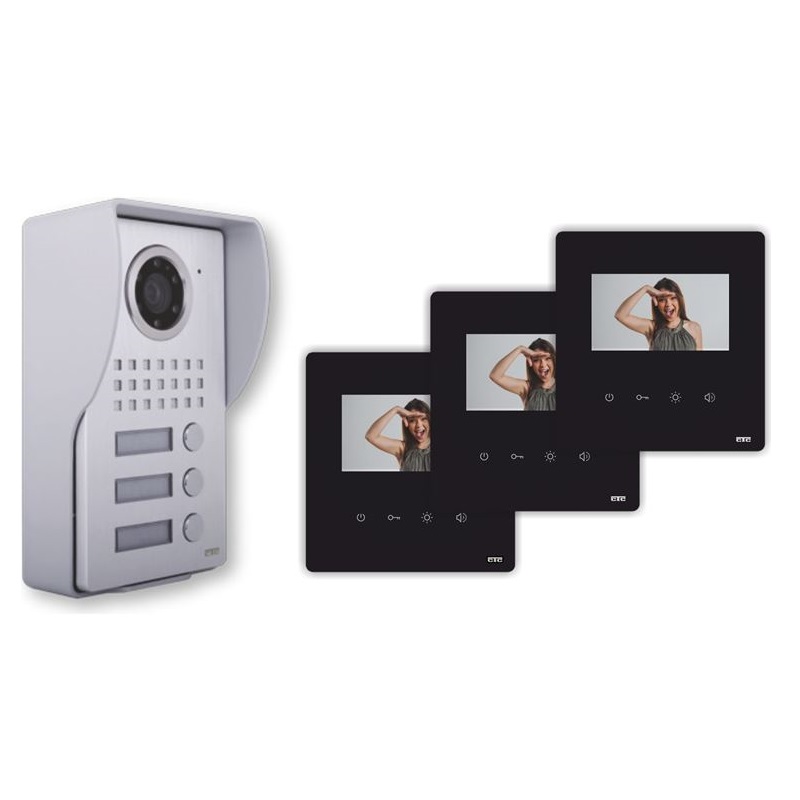 Κιτ θυροτηλεόρασης έγχρωμο για 3 διαμερίσματα 4'3 ιντσών μαύρο CTC