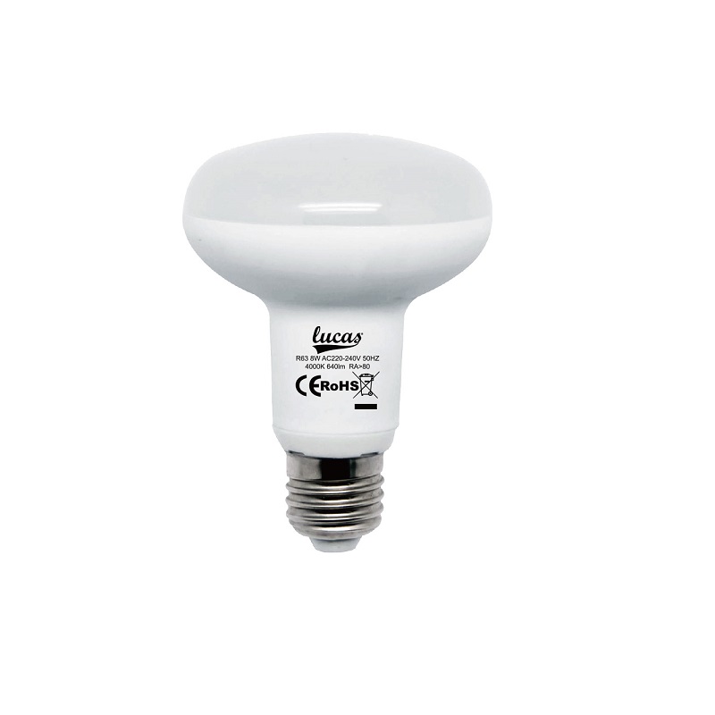 LUCAS Λάμπα LED Σποτ R63 8W E27 ποιοτικής κατασκευής, με 2 έτη εγγύηση και όλα τα πιστοποιητικά ασφαλείας και κατασκευής, όπως ορίζονται από την ΕΕ. Ιδανική led λάμπα για κάθε χώρο, καθώς προσφέρει 15.000 ώρες λειτουργίας και εξοικονόμηση ενέργειας 85% σε σχέση με τους παραδοσιακούς λαμπτήρες και 50% σε σχέση με τους λαμπτήρες οικονομίας. Εκμεταλλευτείτε τη LED τεχνολογία και δείτε τον μηνιαίο σας λογαριασμό ρεύματος να μειώνεται αισθητά, έως και 90%!