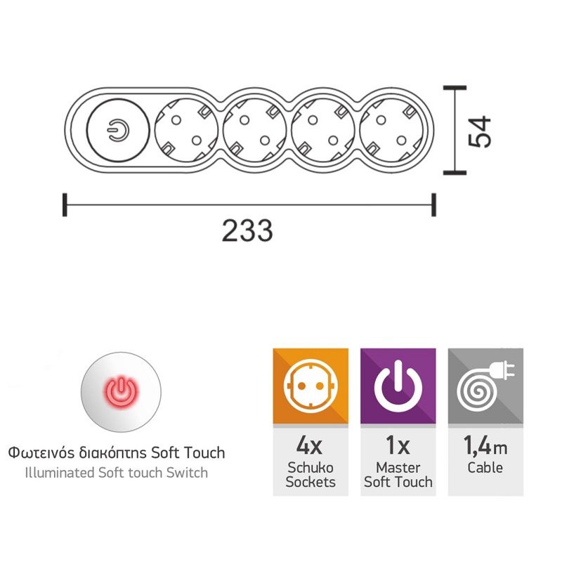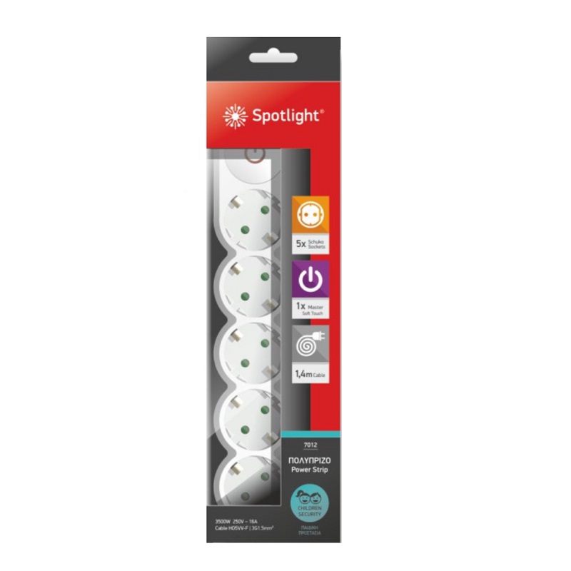 Πολύπριζο ασφαλείας 4 θέσεων με διακόπτη λευκό 1.4m καλώδιο SPOTLIGHT