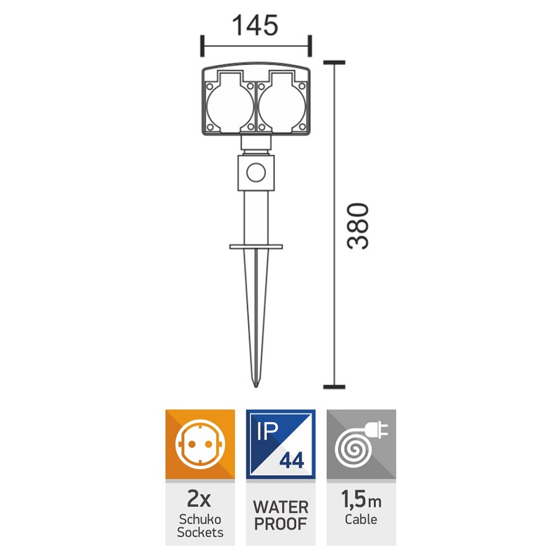 Πολύπριζο στεγανό καρφωτό 2 θέσεων με 1.5m καλώδιο SPOTLIGHT