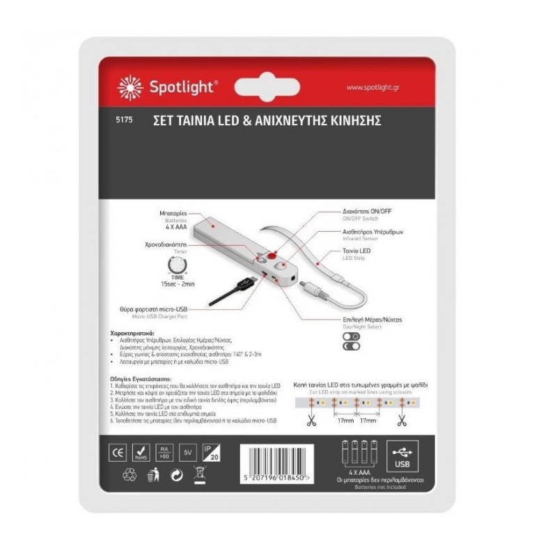 Εύρος γωνίας & απόστασης ευαισθησίας αισθητήρα: 140° & 2-3m