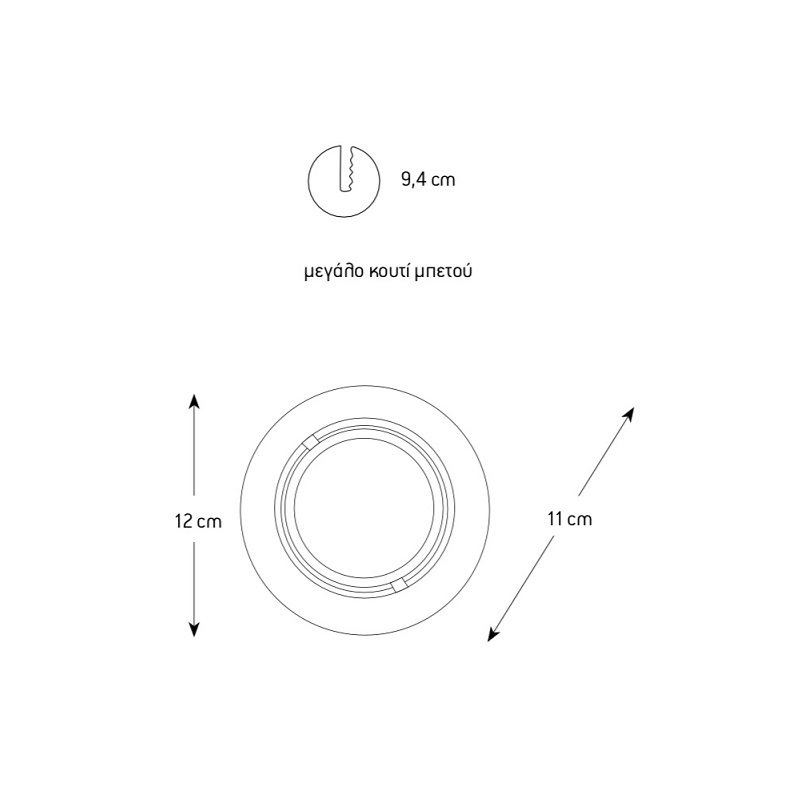 - Διάμετρος κοπής: 9,4cm Μεγάλο κουτί μπετού